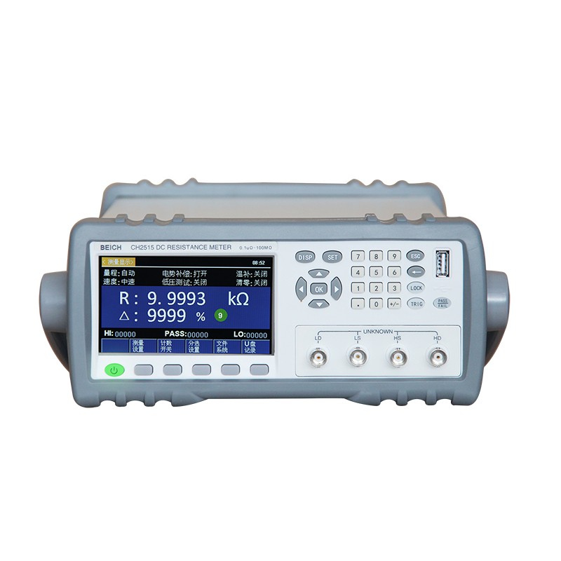 CH2515/A 測試精度: 測試電流準確度: 5%采樣速度:快速:約 100 次/秒;中速:約 25 次/秒;慢速:約 10 次/秒;精測:4 次/秒。 測試范圍: CH2515: 0.1u Ω ~ 110MΩ ; CH2515A: 1u Ω ~ 20MΩ